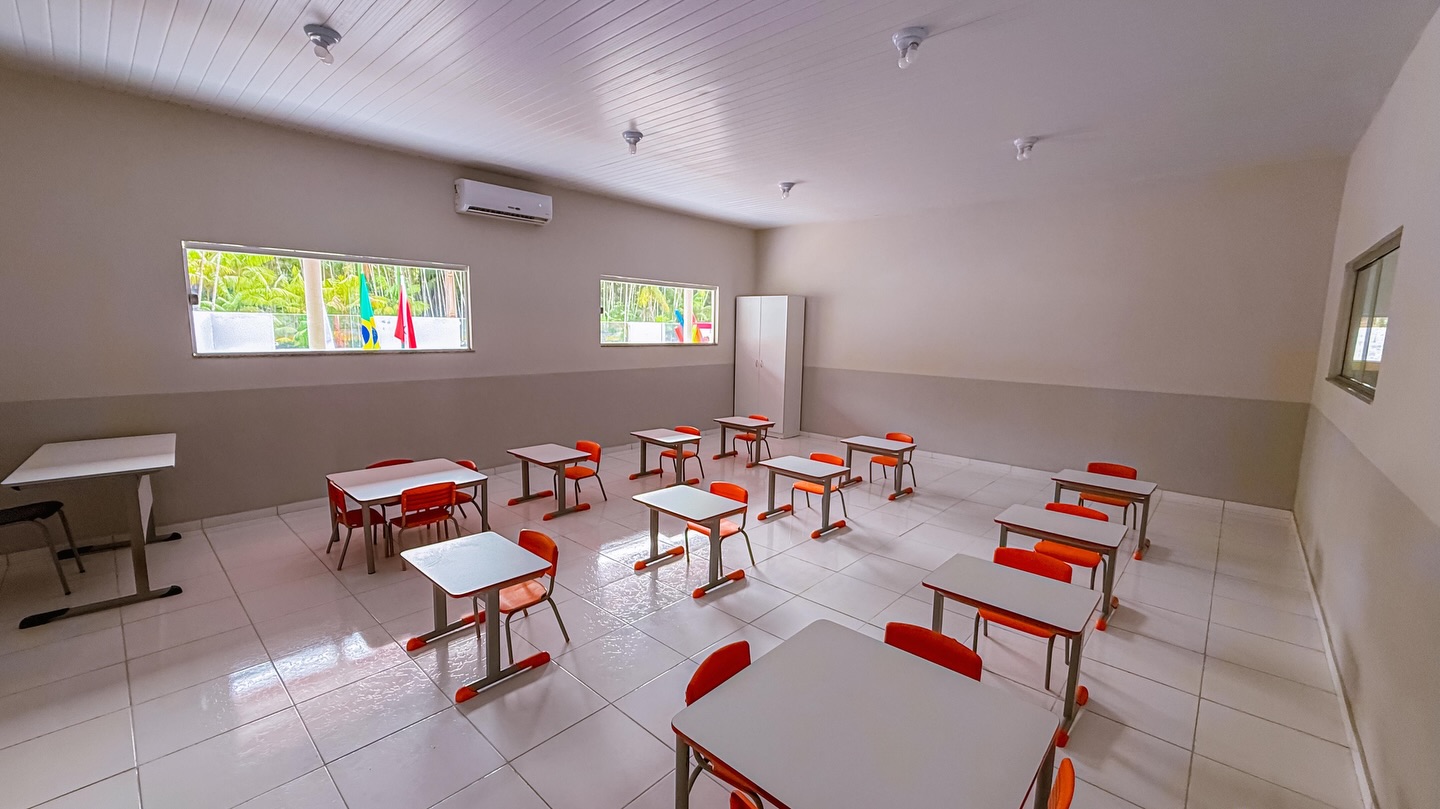 Reformada e ampliada com recursos próprios da Prefeitura, a escola ganhou salas climatizadas, administração, cozinha, refeitório, banheiros, acessibilidade, playground e muro externo para garantir mais segurança a todos.