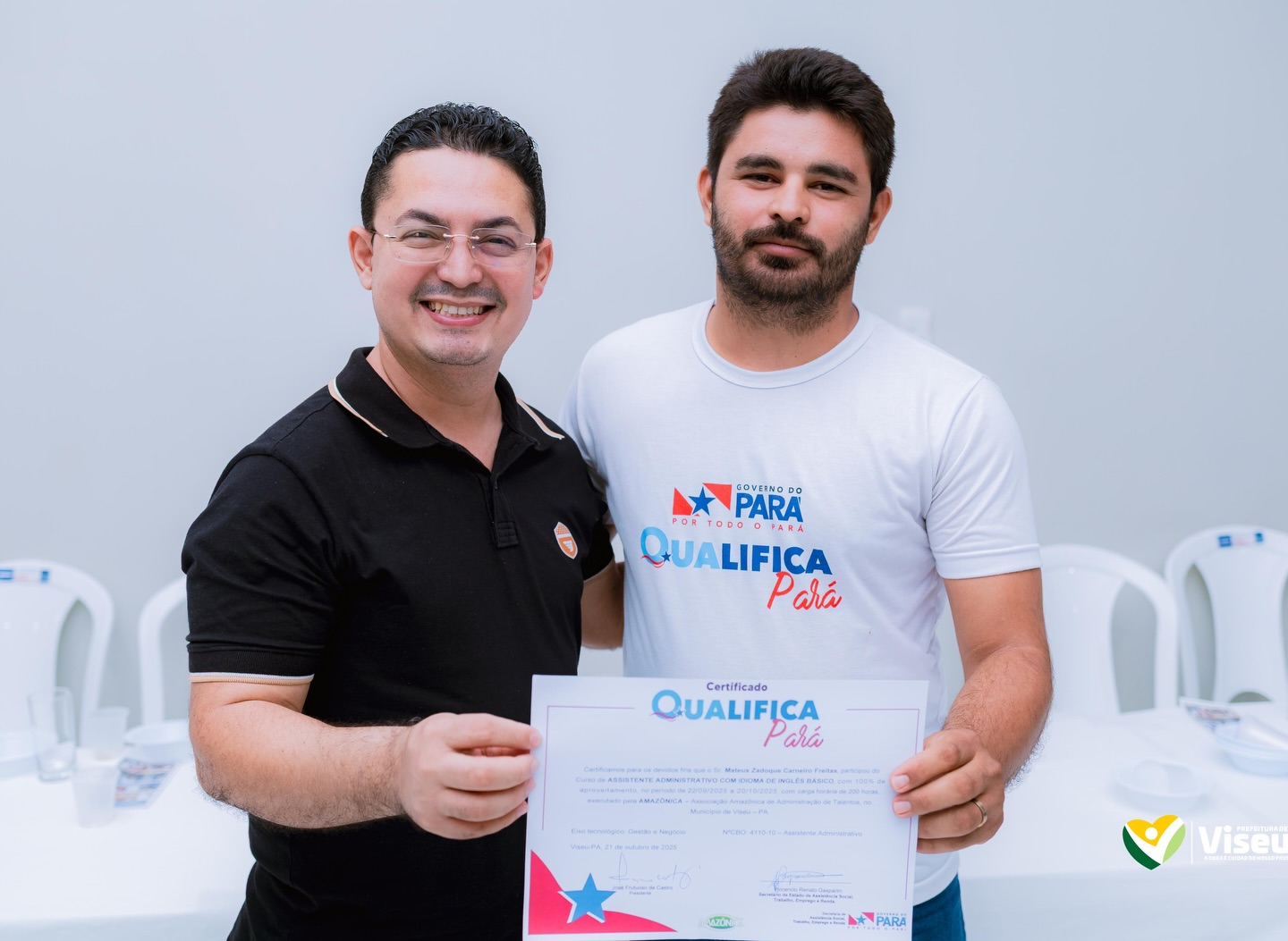 100 novos profissionais prontos para o mercado de trabalho! Através do programa Capacita Viseu, em parceria com o Qualifica Pará, entregamos os certificados para as turmas de: