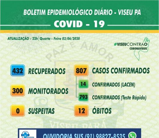 ACOMPANHE O BOLETIM EPIDEMIOLÓGICO DIÁRIO – 03 DE JUNHO DE 2020